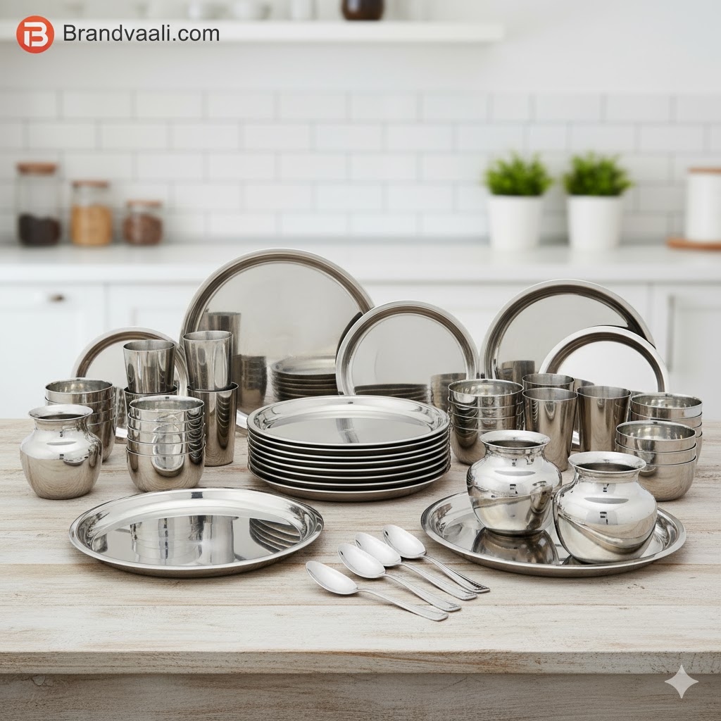 Invest in the lasting beauty and functionality of the Brandvaali.com Luxurious 50-Piece Stainless Steel Grand Dining Set – a true heirloom collection.